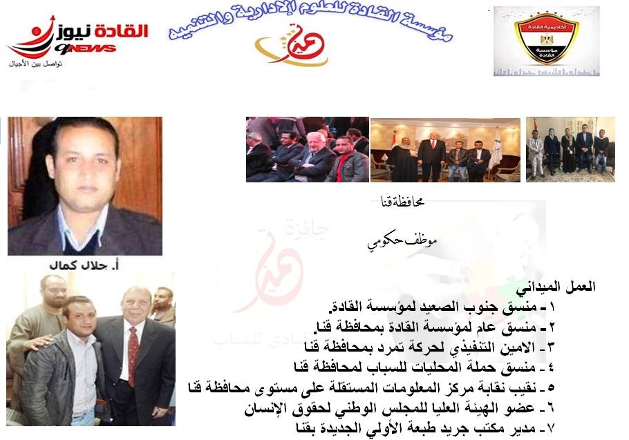 الاستاذ جلال كمال فرغلى ربيعى وصل إلى المرحلة الثانية لجائزة التميز القيادي للشباب قسم الفرع اعضاء مؤسسة القادة منتظر دعم الأصدقاء للوصول إلى المرحلة النهائية للمسابقة الدعم بالتعليق على البوست فهي مرحلة التصويت الإليكتروني.