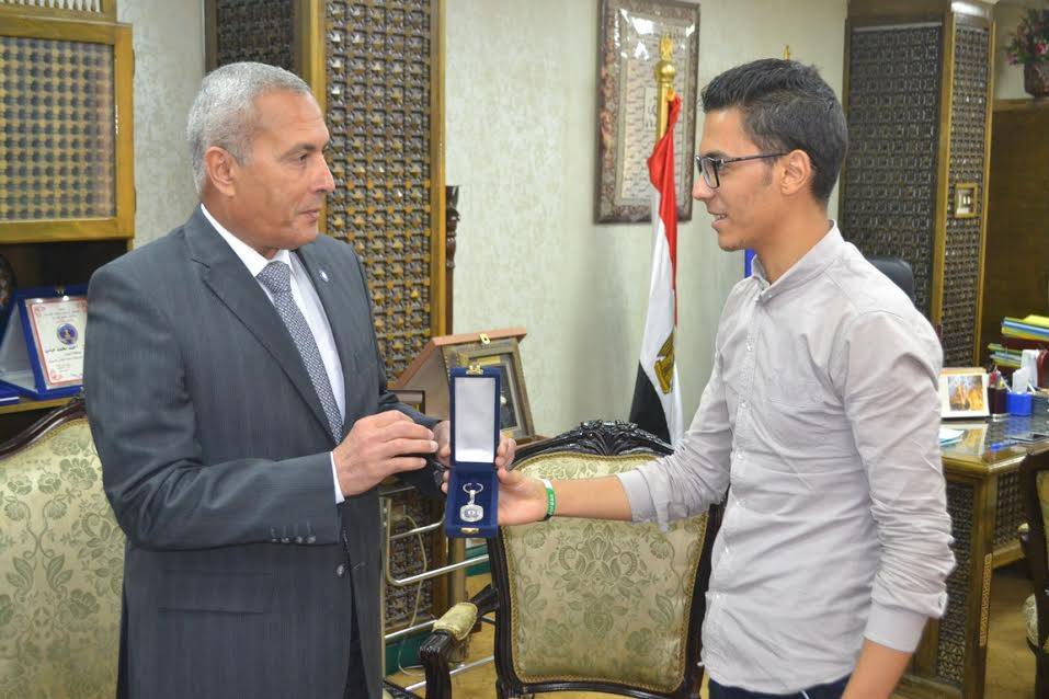 وفي نهاية اللقاء أهدى المحافظ الطالبين ميدالية المحافظة، مقدماً لهما التهنئة على فوزهما بالمركز الثالث ورفع اسم محافظة السويس ومصر في المسابقات الدولية .