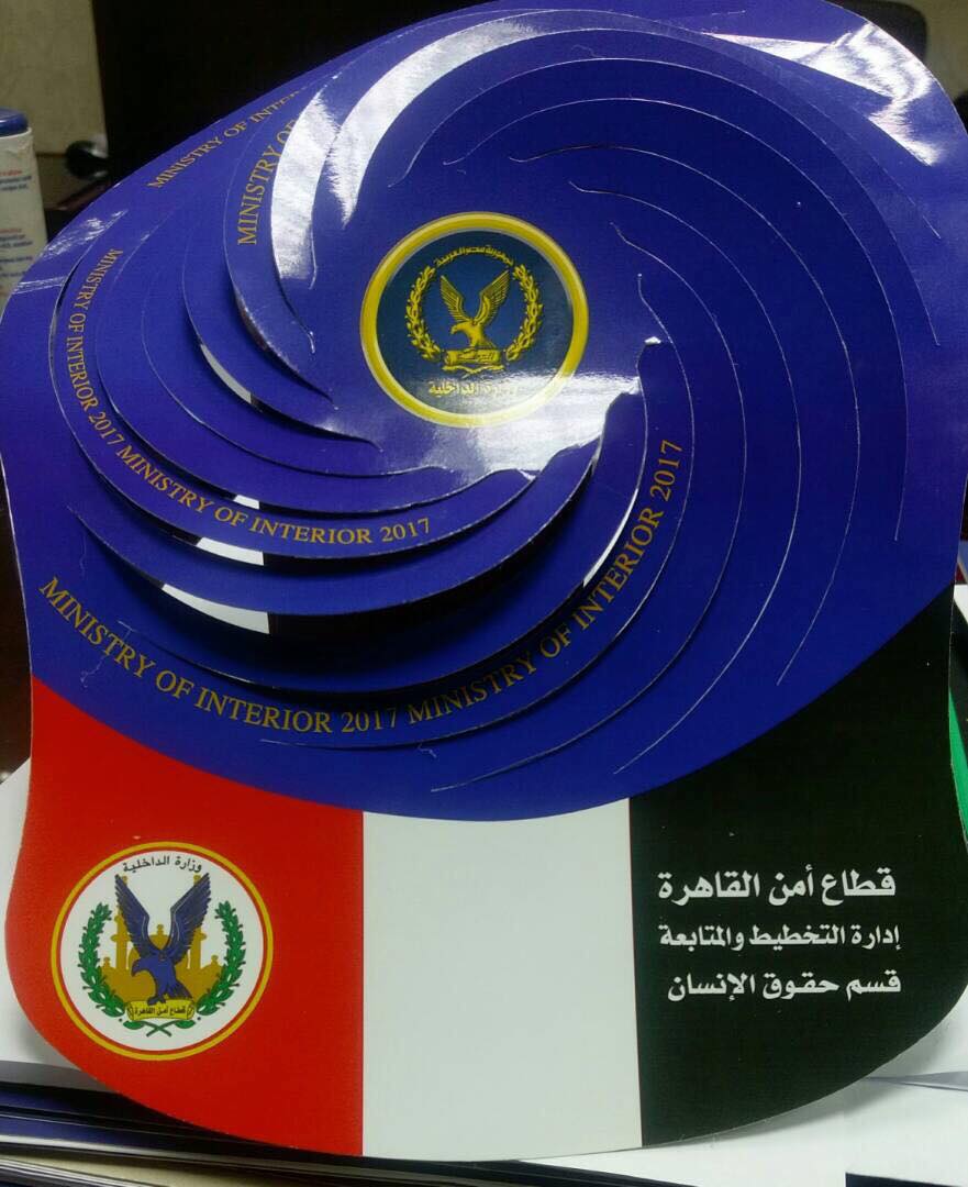 قام قسم حقوق الإنسان بمديرية أمن القاهرة، بتصميم وتنفيذ (كاب ورقى) بشعار المديرية وقسم حقوق الإنسان بالمديرية، ووزع ضابطات وضباط القسم الكاب على الأطفال فى كافة قطاعات المديرية، بالإضافة لعدد من السائحين والأجانب الذين تصادف وجودهم بمحيط المتحف المصرى والقلعة، تعبيراً وتأكيداً على التزام جهات المديرية بمعايير حقوق الإنسان، باعتبارها منهجاً والتزاماً أساسياً فى كافة مجالات وإجراءات العمل الأمنى .