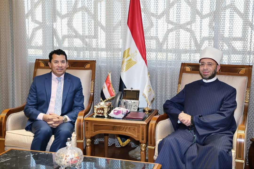 بحث وزير الأوقاف الدكتور أسامة الأزهري مع وزير الشباب والرياضة الدكتور أشرف صبحي، سبل التعاون بين الوزارتين من أجل تعزيز الوعي الديني الوسطي بين الشباب، وترسيخ القيم الأخلاقية والروحية، وتوسيع دائرة التأثير لتشمل جميع فئات المجتمع، وتعزير تمكين الشباب وفقا لتوجيهات القيادة السياسية.