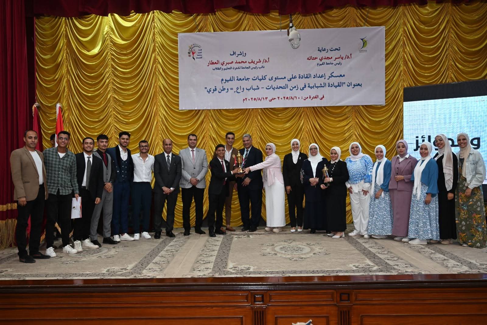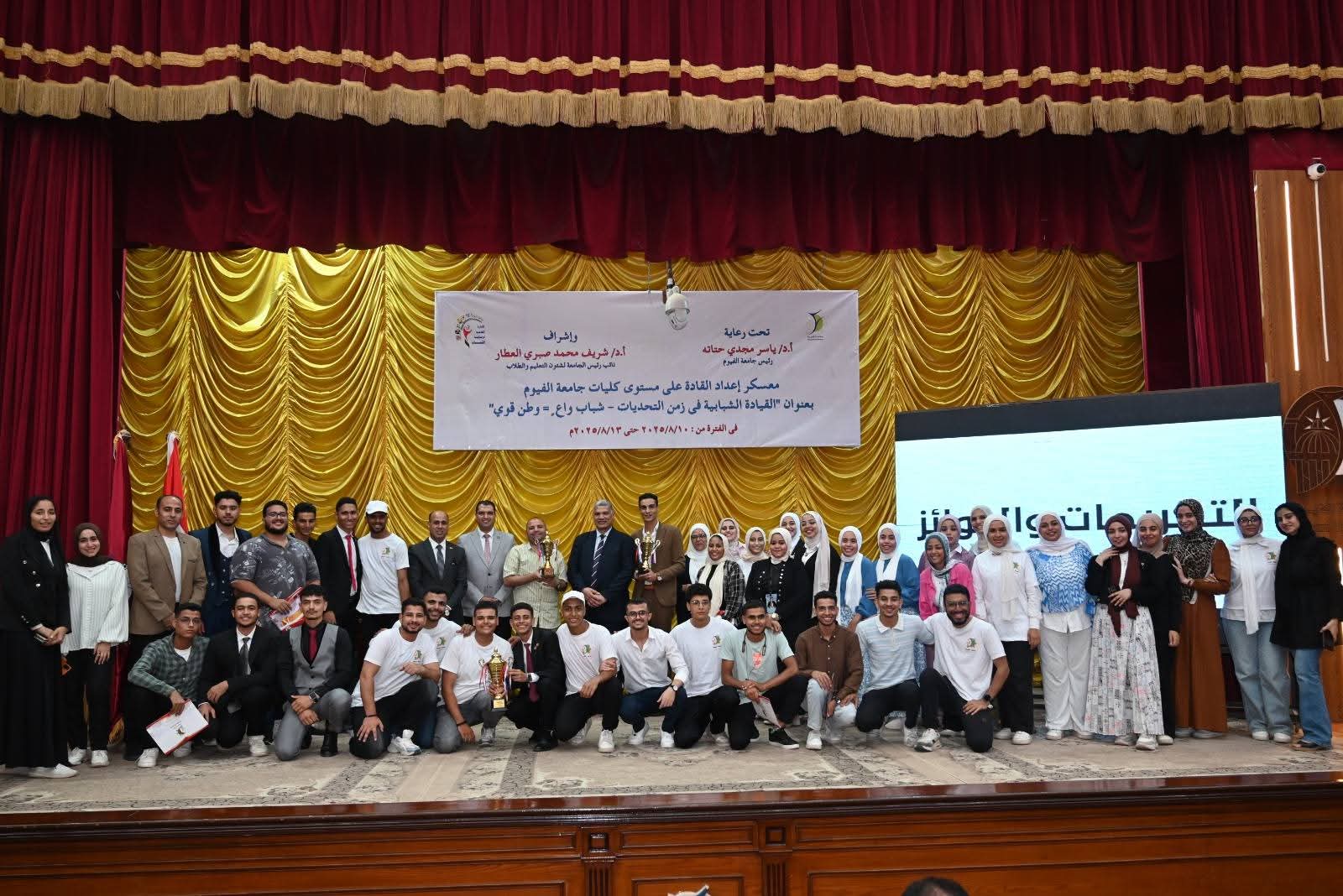 تحت رعاية أ.د. ياسر مجدي حتاتة، رئيس جامعة الفيوم، شهد أ.د. عرفة صبري، نائب رئيس الجامعة لشؤون الدراسات العليا والبحوث، ختام فعاليات معسكر إعداد القادة، تحت إشراف أ.د. شريف العطار، نائب رئيس الجامعة لشؤون التعليم والطلاب، والذي نظمته الإدارة العامة لرعاية الشباب، بحضور أ.د. وائل طوبار، منسق عام الأنشطة الطلابية، ود. محمد محسن، الخبير بالأمن السيبراني، وأ. سلوى فؤاد، مدير عام رعاية الشباب، والسادة أعضاء لجنة تحكيم مسابقات المعسكر، وعدد من أعضاء هيئة التدريس والإداريين والطلاب المشاركين، وذلك يوم الأربعاء 13 أغسطس 2025، بقاعة المؤتمرات الكبرى.