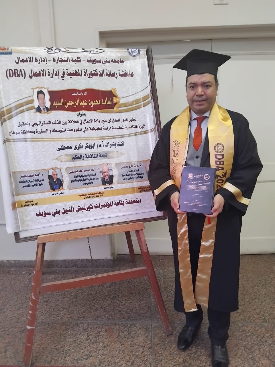 محمود عبد الرحمن السيد لحصول على درجة الدكتوراة المهنية في اداره الأعمال جامعة بني سويف..