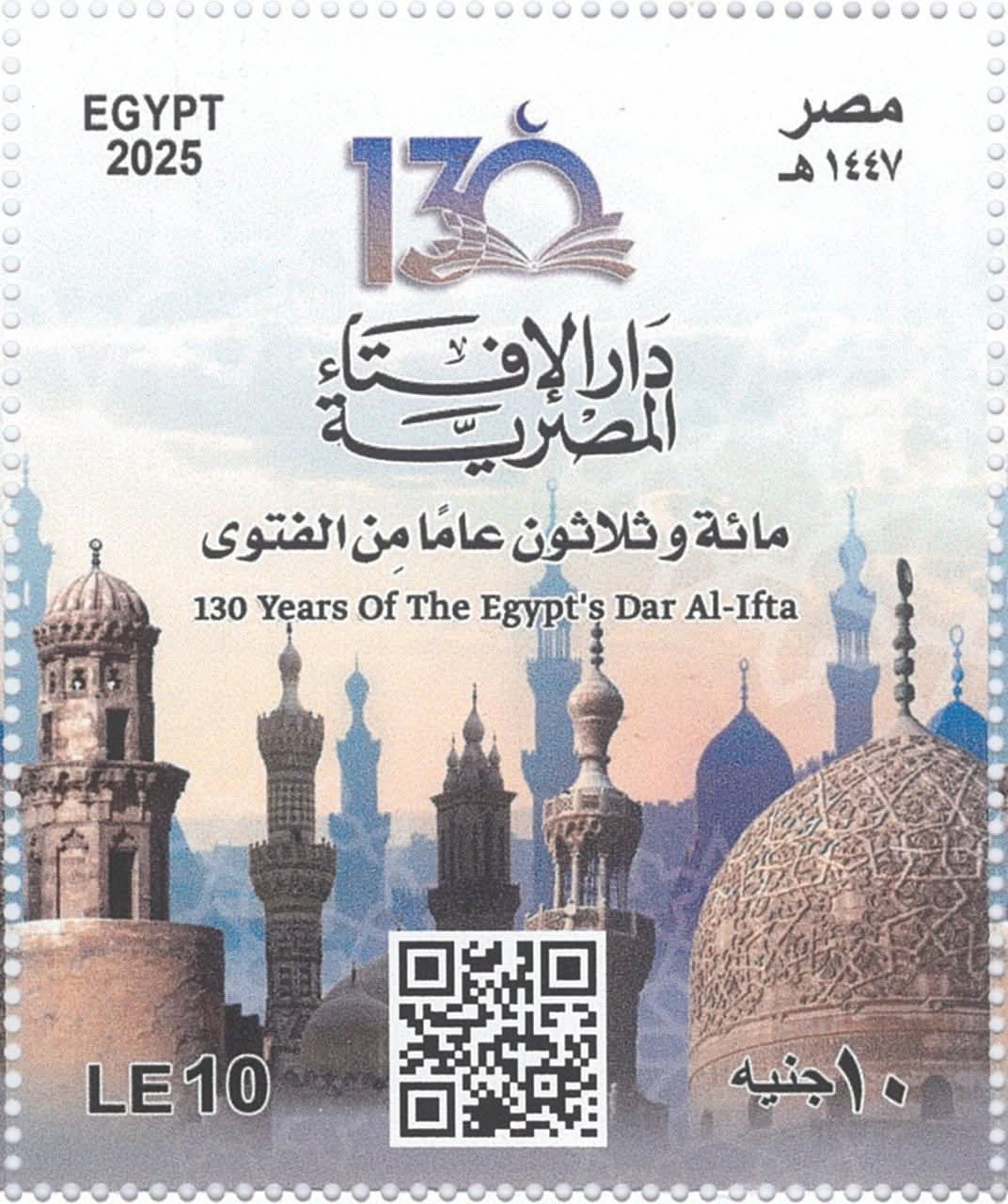 أصدرت الهيئة القومية للبريد طابع بريد تذكاريًّا؛ احتفاءً بمرور 130 عامًا على تأسيس دار الإفتاء المصرية، وتوثيقًا لهذا الحدث المهم، وإبرازًا للدور التاريخي والعلمي الذي قامت به دار الإفتاء منذ إنشائها عام 1895 في خدمة علوم الشريعة وترسيخ منهج الوسطية.