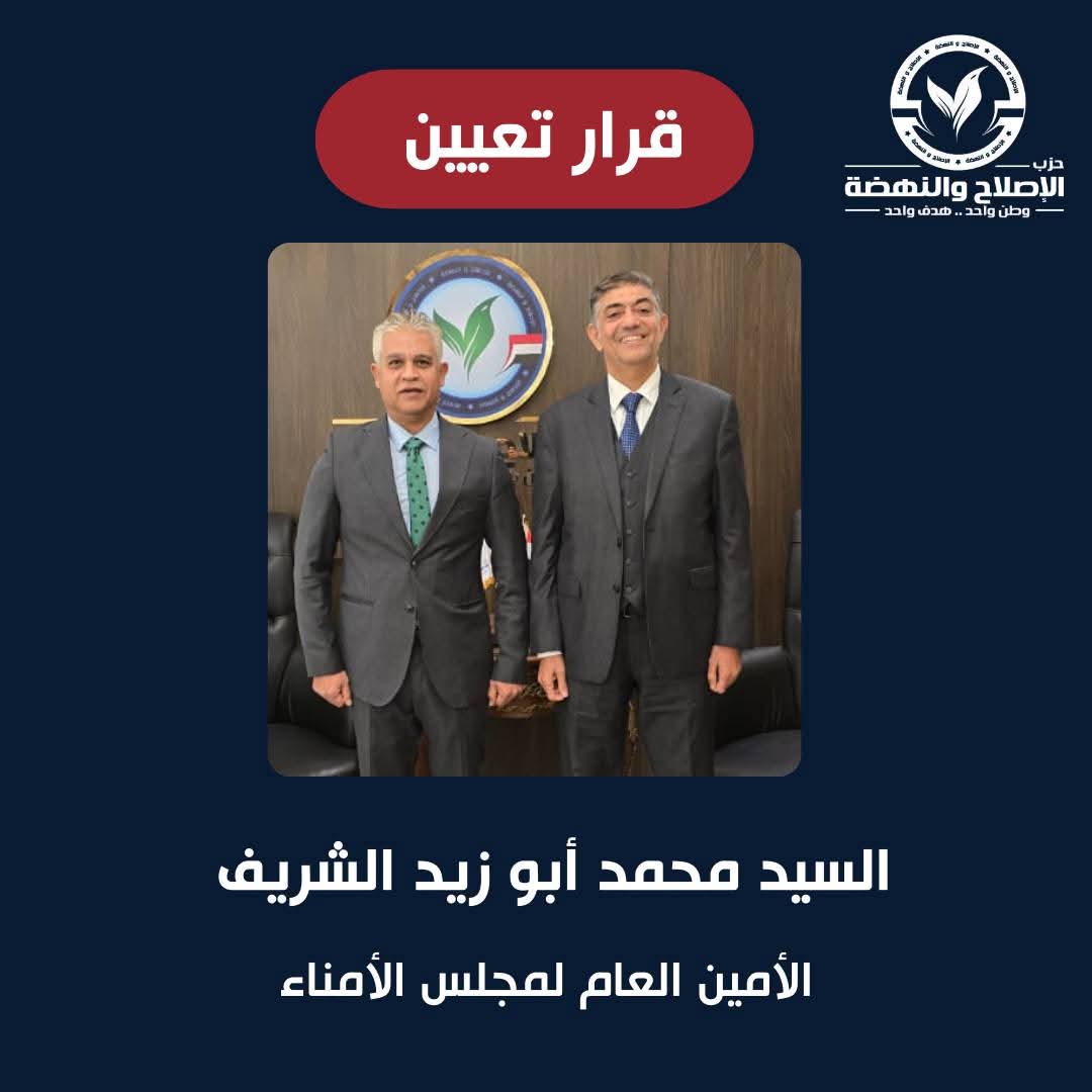 لتوليه منصب الأمين العام لمجلس الأمناء بحزب الإصلاح والنهضة