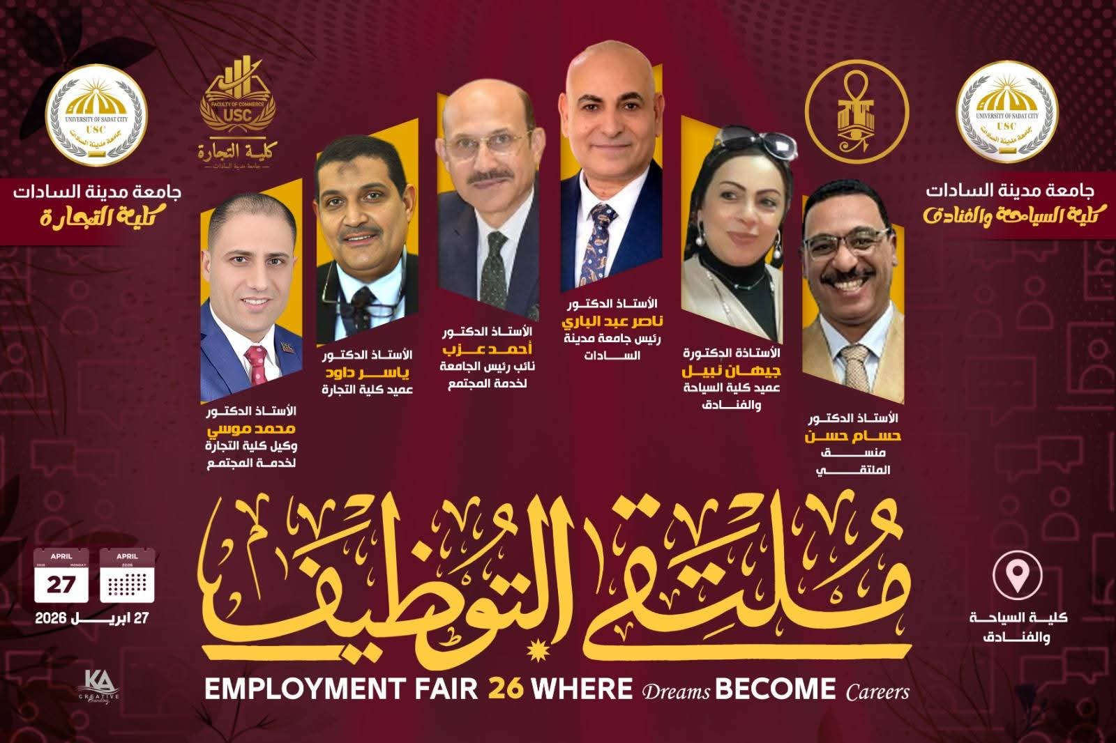 تشرفت كليتي التجارة والسياحة والفنادق بجامعة مدينة السادات بتنظيم ملتقى توظيفي استثنائي رسم خارطة طريق حقيقية لمستقبل أبنائنا الطلاب.