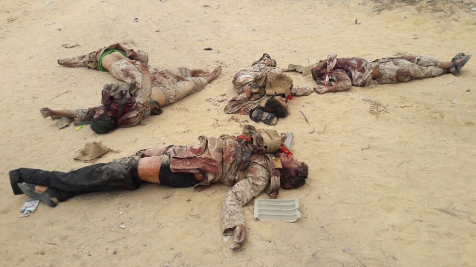 نشر العقيد تامر الرفاعى، المتحدث العسكري، للقوات المسلحة، صور مقتل وتصفية العناصر التكفيرية بعد محاولة إحباط هجومهم مع قوات إنفاذ القانون بشمال سيناء على بعض نقاط التمركز جنوب رفح.
