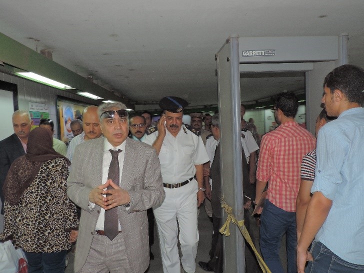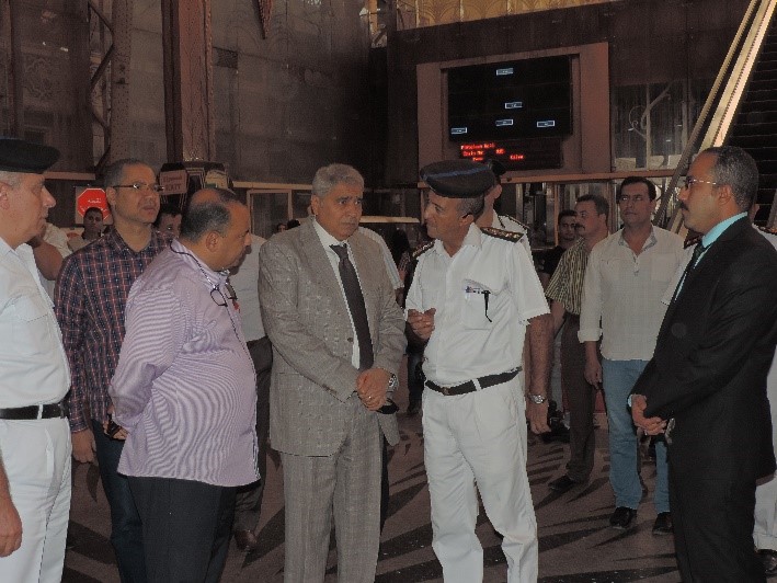 كما تفقد محطة سكك حديد القاهرة وتأكد من انتظام الخدمات الأمنية المعينة ونبه بشدة اليقظة وتفعيل أجهزة (X. RAY) وبوابات الكشف عن المعادن، قام بالمرور على منافذ حجز تذاكر السفر للوجهين القبلي والبحري ووجه بتعزيز الخدمات النظامية والبحثية نظرًا للزحام الشديد والاستماع لبعض جمهور الركاب للاطمئنان على مدى استيعابهم للخدمة المقدمة اليهم وعن إمكانية وجود حجز تذاكر سفر من عدمه.